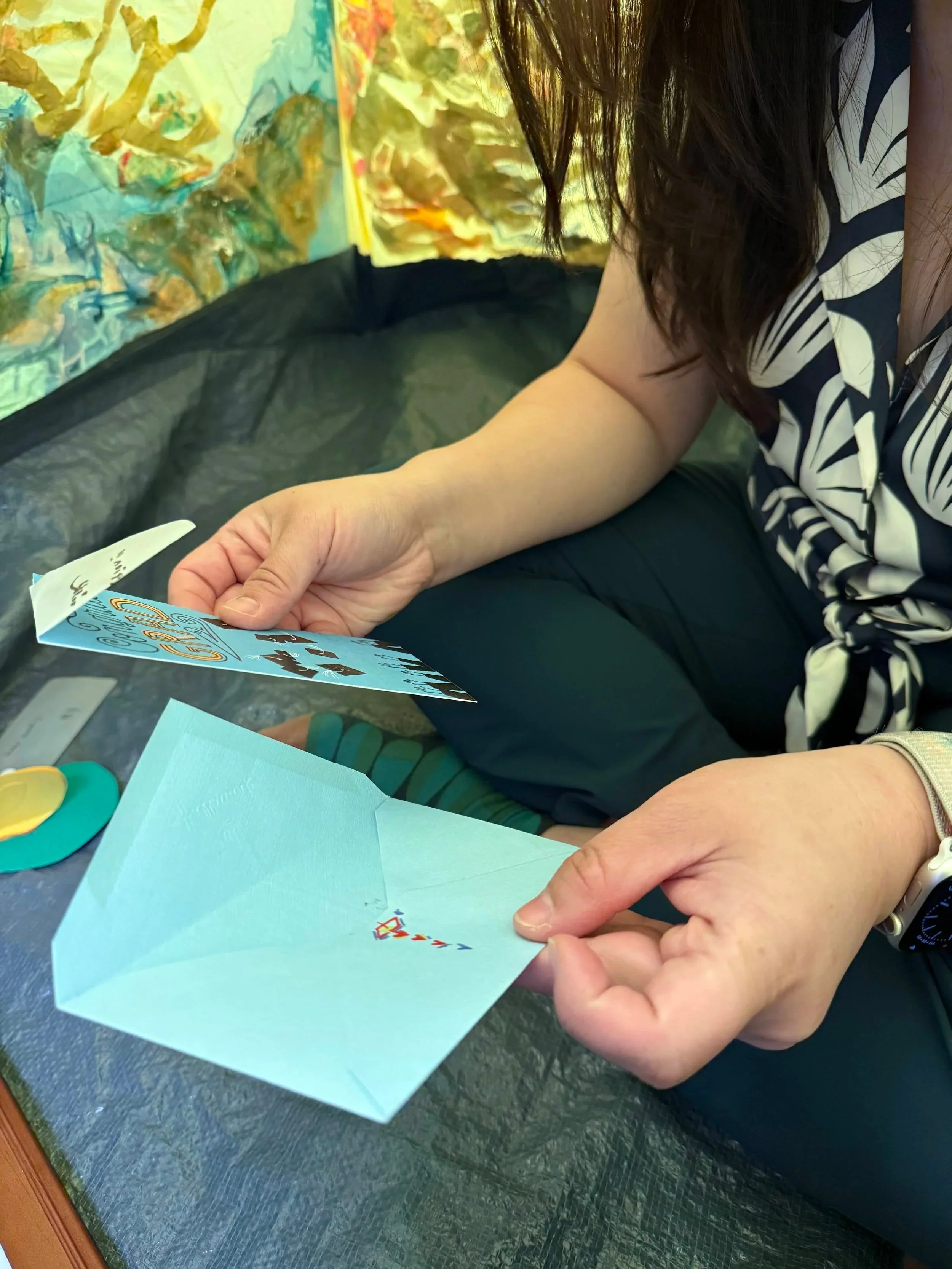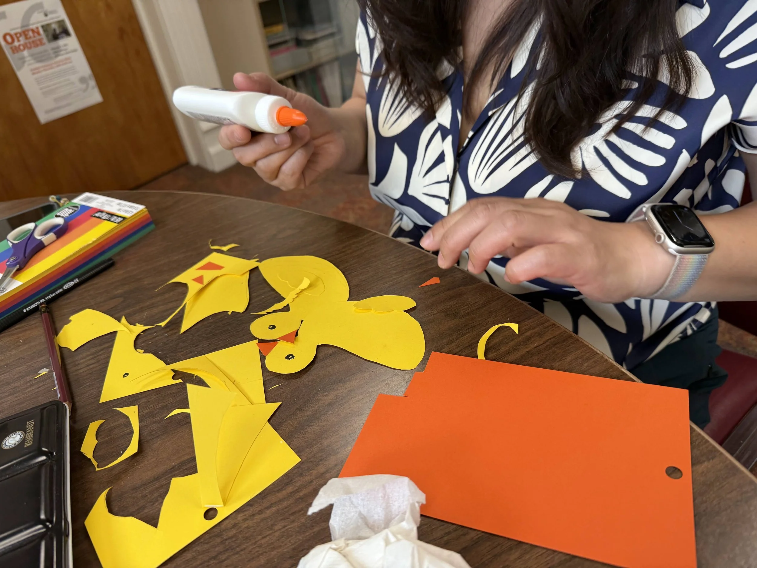 The process was quiet but filled with meaning. Tracing, erasing, cutting, folding—each gesture carried her memories forward. The duck stood fragile, yet it radiated persistence. In its body of paper Ki placed her grief and her strength. She spoke of childbirth, of taking a taxi alone to the hospital in China and announcing calmly, I am here to give birth. She laughed with embarrassment at how she once tried to write an essay about that moment only to lose the file, as if memory itself had escaped her grasp. Her friend listened closely, adding her own story of pregnancy and recovery. In the yellow tent, conversation intertwined with scissors and pencils, each sound a thread in their shared fabric of resilience.
