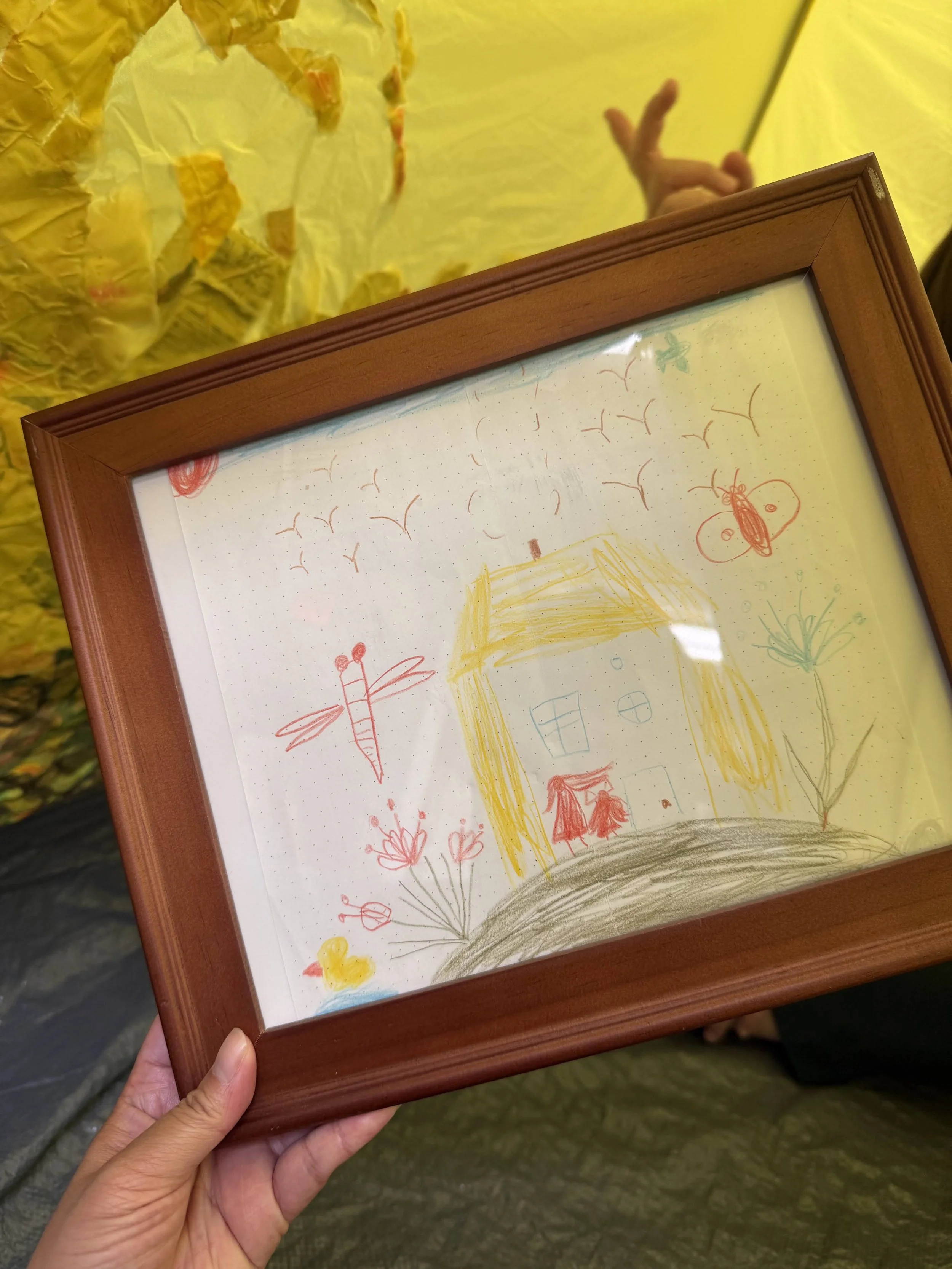 From her bag she drew a wooden frame. Inside was a drawing made by her daughter on the airplane when they left China. The child had been five, restless and not yet verbal because of special needs. Ki had packed colored pencils and paper, hoping to calm her. The drawing showed a house, flowers, the sun, an airplane, and in the corner, a yellow duck. Over the years that duck returned again and again in her daughter’s sketches. It became a small companion, a sign of presence without words. Ki touched the frame. “She could not speak then,” she said, “but she drew a lot.”